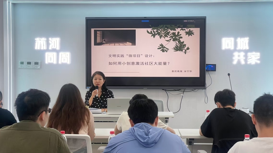 9月19日上午,2025年“宁馨家园·时代好声音”时事讲读进社区活动在长宁区周家桥街道党群服务中心举办。新民晚报时政中心主编、高级记者宋宁华作主题为《文明实践“微项目”设计:如何用小创意激活社区大能量?》的报告。